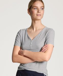 CALIDA Women’s Underwear Silky Wool Joy Short-sleeved Wool-silk Shirt | Sterling Blue