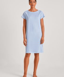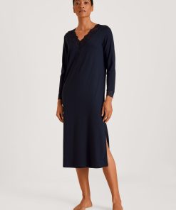 CALIDA Women’s Nightwear Cotton Special Long Sleeve Nightdress – 100 Cm Length | Riviera Blue