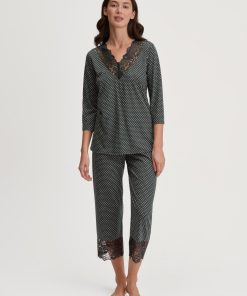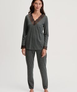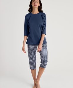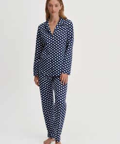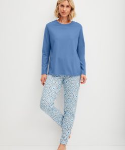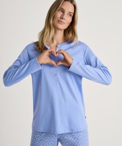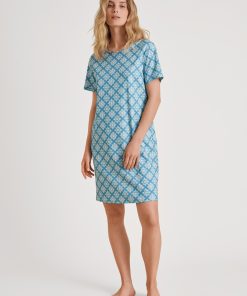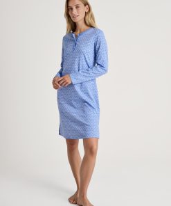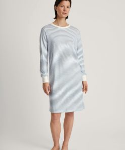 CALIDA Women’s Nightwear Cotton Stripes Long Sleeve Nightdress – 100 Cm Length | Endless Sky