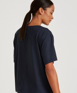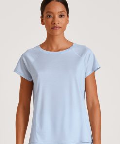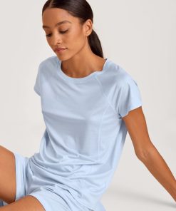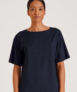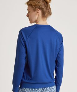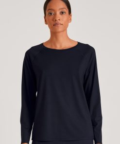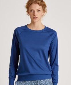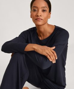 CALIDA Women’s Nightwear Favourites Glow Long-sleeved Shirt, Button-through | Peacoat Blue