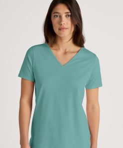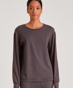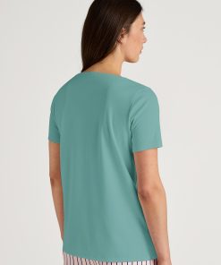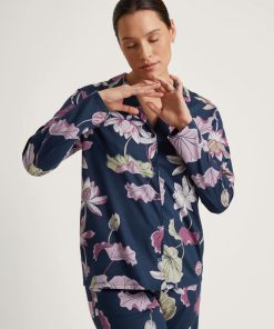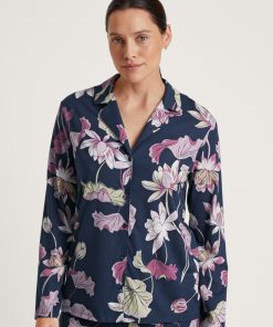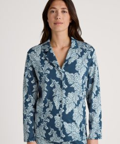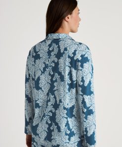 CALIDA Women’s Nightwear Favourites Botanic Long-sleeved Shirt, Button-through | Deep Dive Petrol