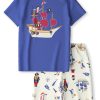 CALIDA Kid’s Boys Toddlers Pirates Short Pyjamas In Pure Organic Cotton | Deep Cobalt
