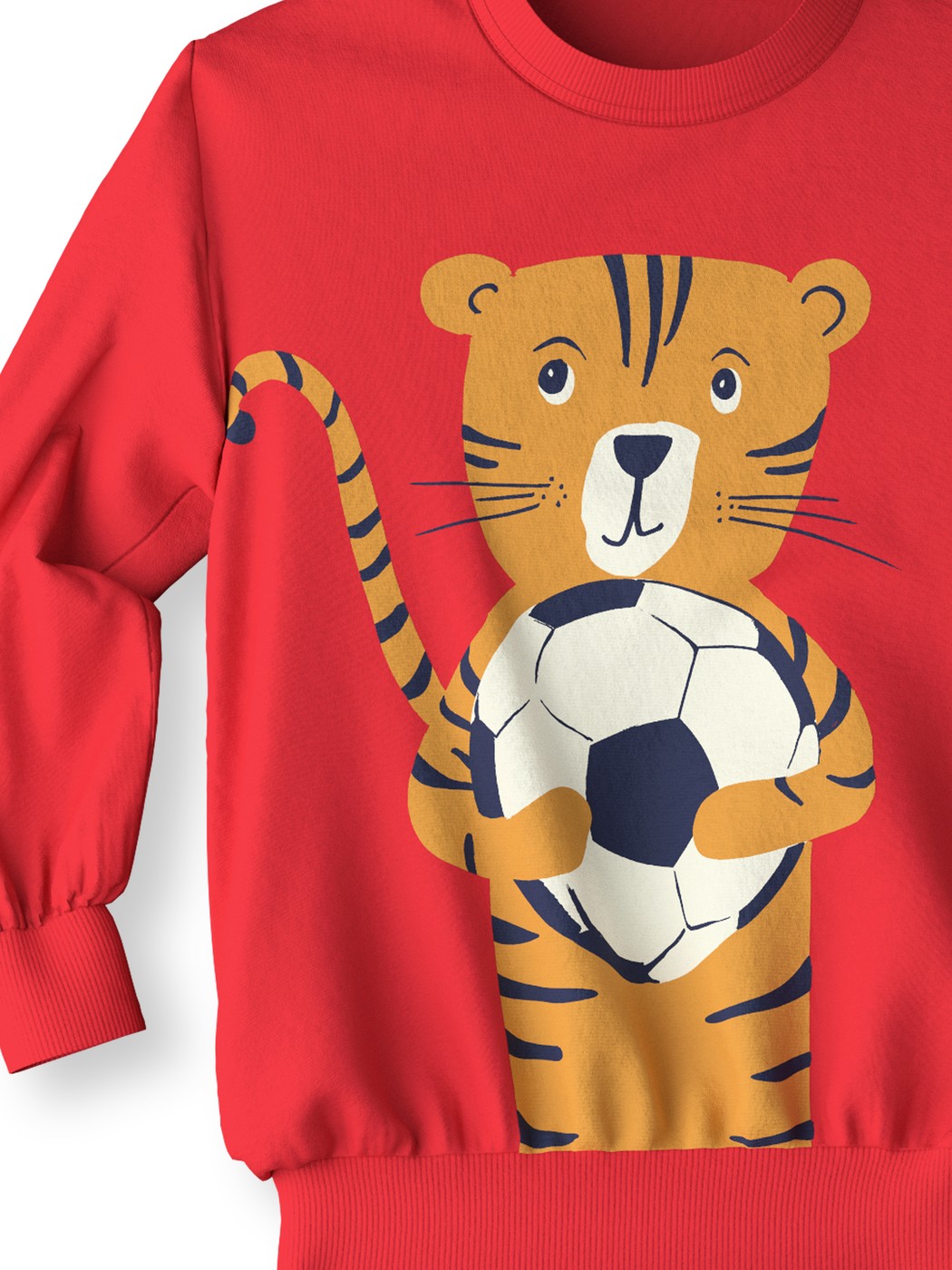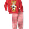 CALIDA Kid’s Boys Toddlers Soccer Pyjama With Cuff In Pure Organic Cotton | Cherry Red