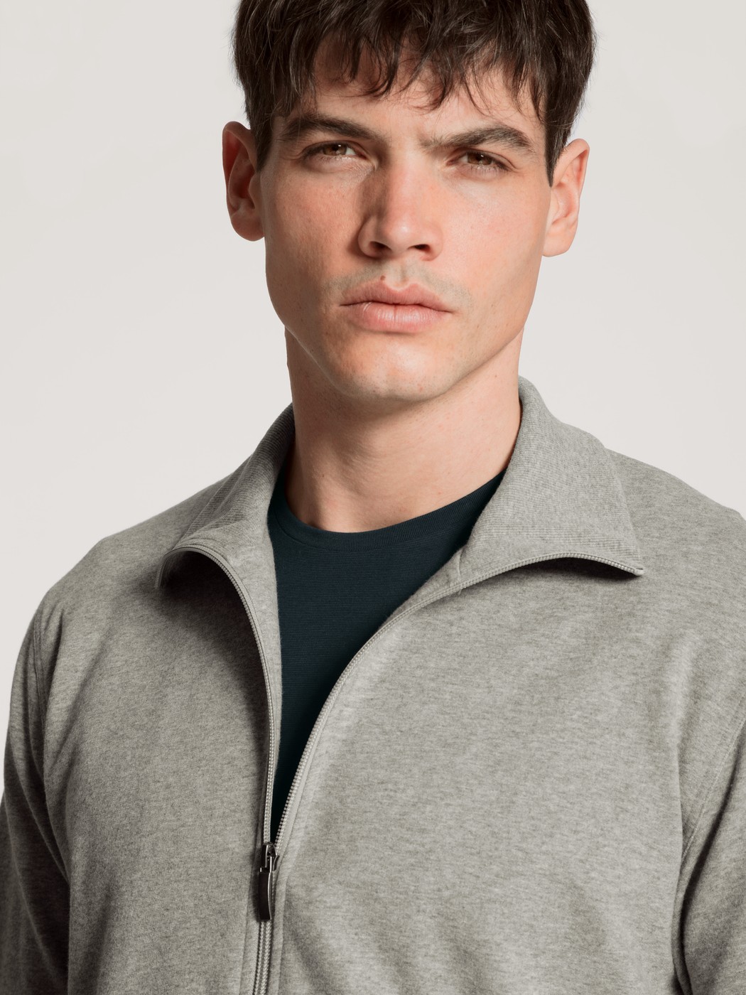 This sweat-style jacket is a real CALIDA all-rounder. Simple colours and a sporty design make this jacket the perfect companion at home and on the go. The side pockets and zipper guaranteeing freedom of movement are particularly handy.