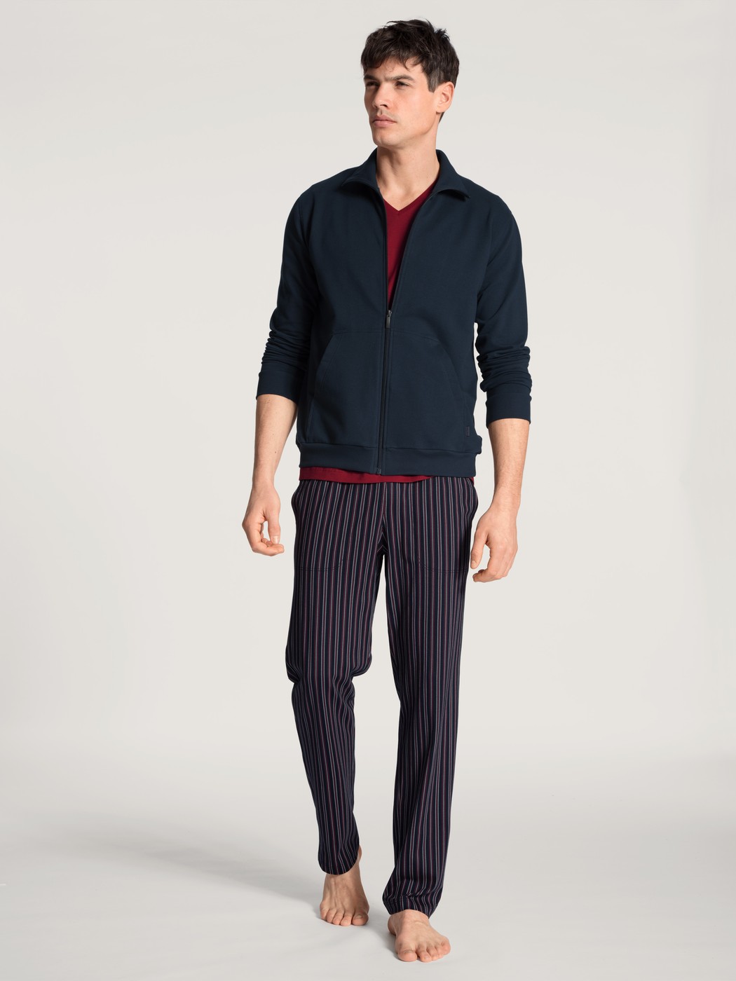 This sweat-style jacket is a real CALIDA all-rounder. Simple colours and a sporty design make this jacket the perfect companion at home and on the go. The side pockets and zipper guaranteeing freedom of movement are particularly handy.