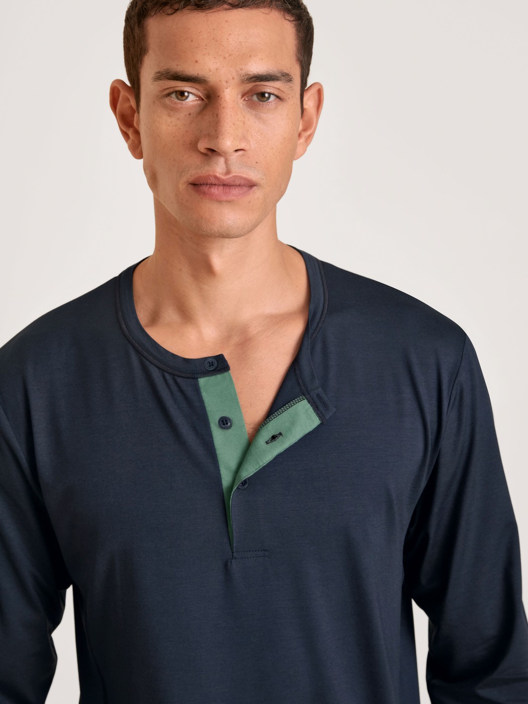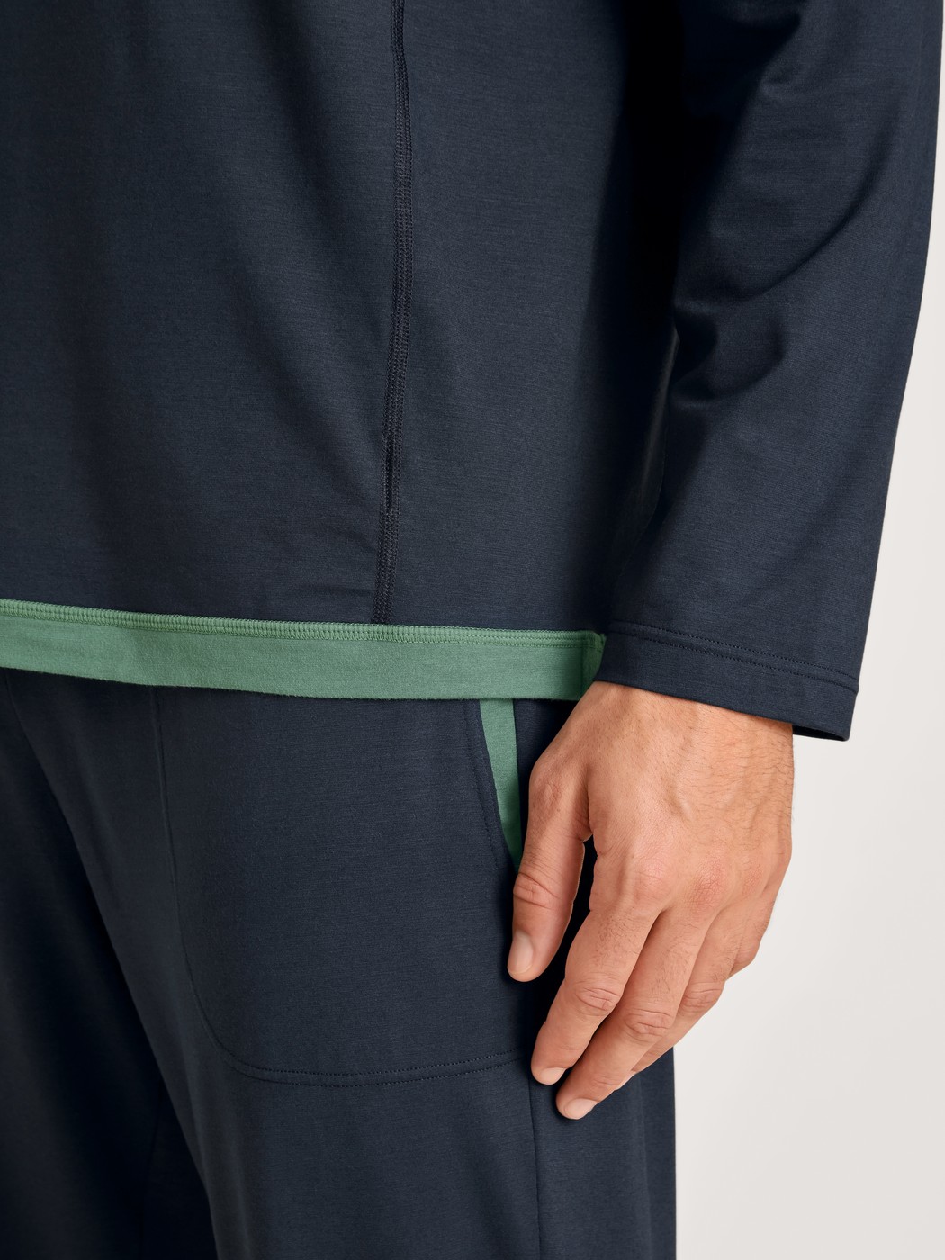 Maintaining a healthy balance isn’t always easy, but the long-sleeve shirt from the DEEPSLEEPWEAR BALANCING collection from CALIDA supports the body’s natural temperature regulation with its revolutionary combination of high-tech natural fibres and cutting-edge processing. The temperature- and moisture-regulating blend of TENCEL™ Modal Micro and SeaCell™ modal ensures a healthy sleeping environment, whatever the weather. The shirt feels silky-soft against the skin and nourishes it night after night with regenerating vital substances derived from Icelandic seaweed. This basic ensures a healthy balance and is a must-have for your underwear drawer.