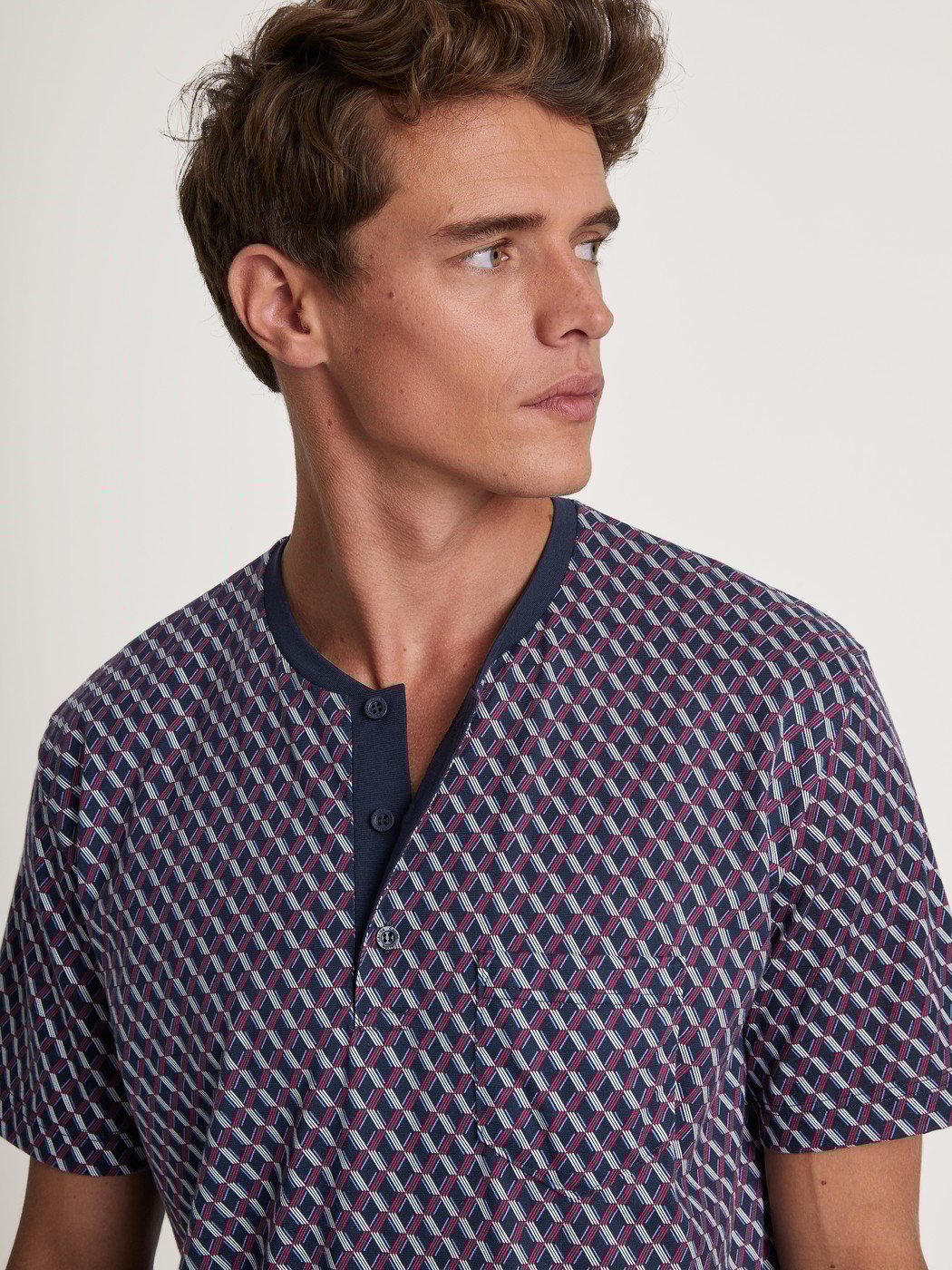 Classic short-sleeve men’s nightshirt from the RELAX IMPRINT 1 series by CALIDA. The fine cotton ensures a comfortable feel and the relaxed fit provides freedom of movement for your legs throughout the night.