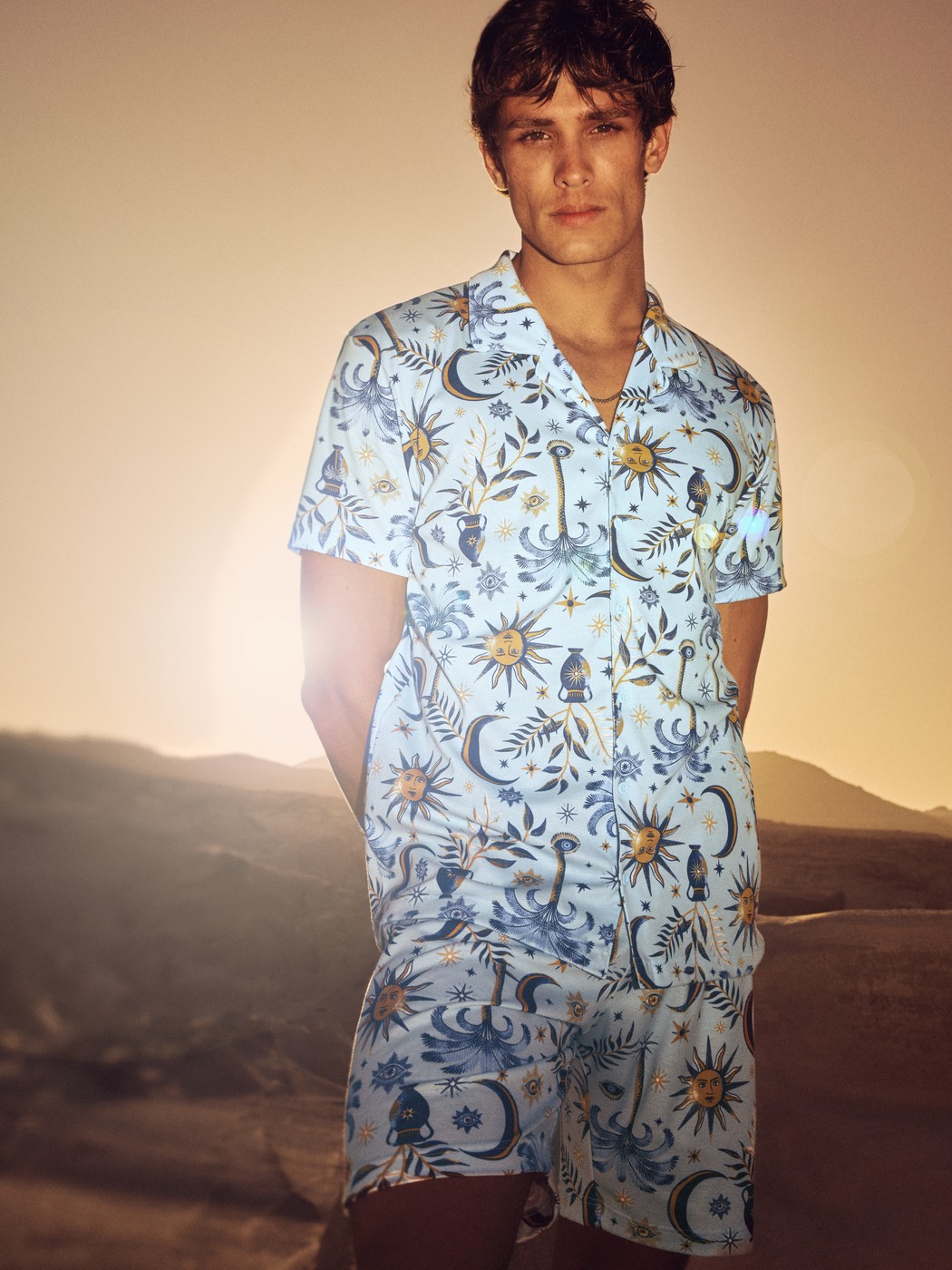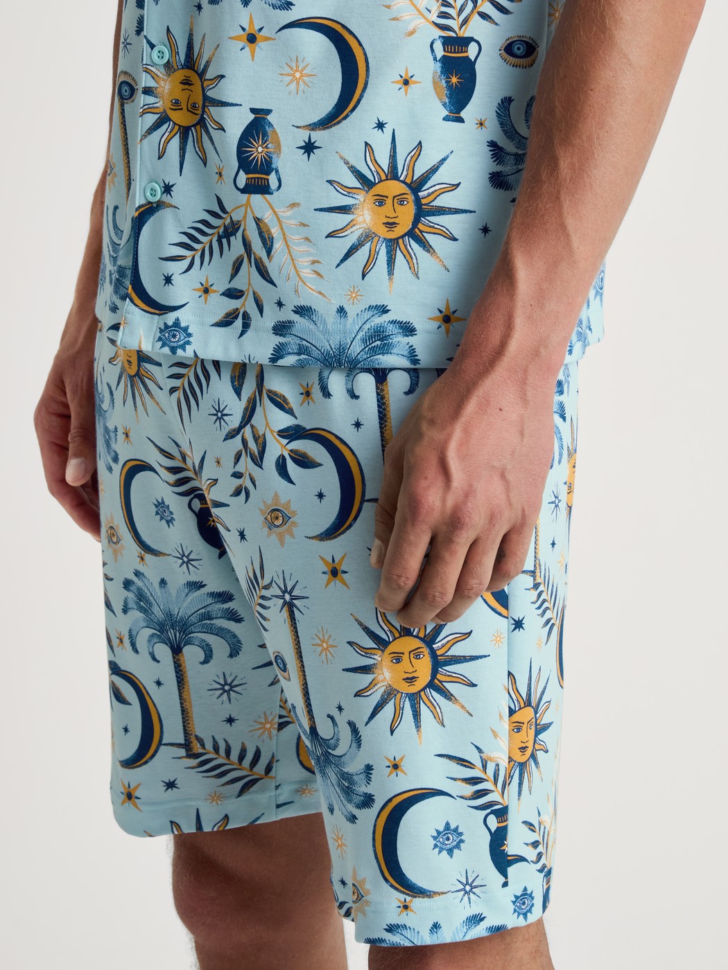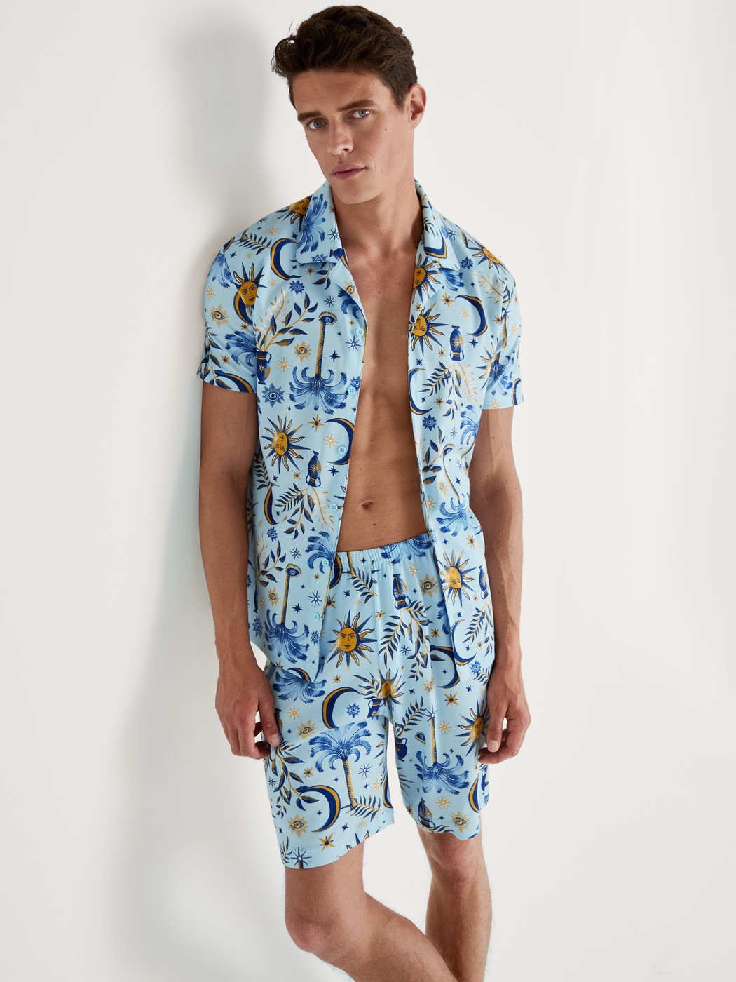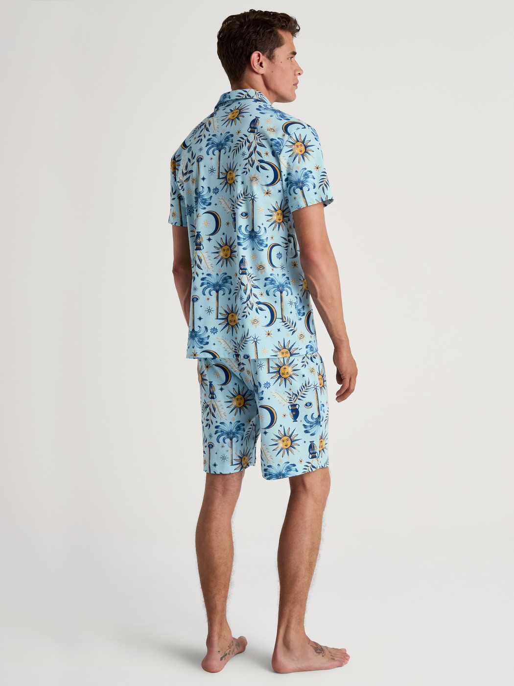 Whether subtly with a plain, single-coloured T-shirt and patterned all-over print shorts, or strikingly in a perfectly coordinated set of a buttoned shirt and shorts – this nightwear series RELAX MAGIC is a highlight in the wardrobe with its unisex cut.