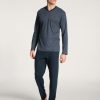 Long pyjamas made from comfortable and light interlock in classic colours by CALIDA. The combination of trendy striped top and super comfy colour block pants are also ideal as a relaxed leisure outfit. From the new RELAX STREAMLINE 2 series.