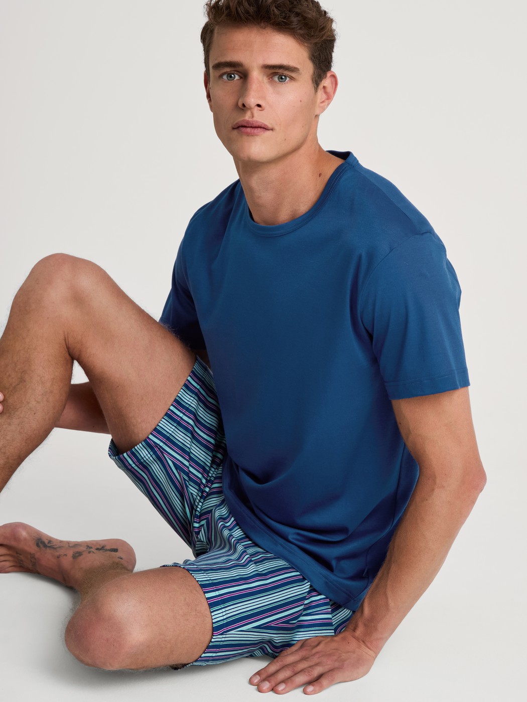 Everyone loves hot nights – yet no one wants to sweat. That’s why the RELAX SUPERLIGHT short pyjama by CALIDA is the right choice for summer. The unique blend of Supima®-swiss+cotton and functional TENCEL™ fibres ensures an ultra-light wearing experience and a refreshingly uncomplicated fit. The patterned uni design adds cool accents.