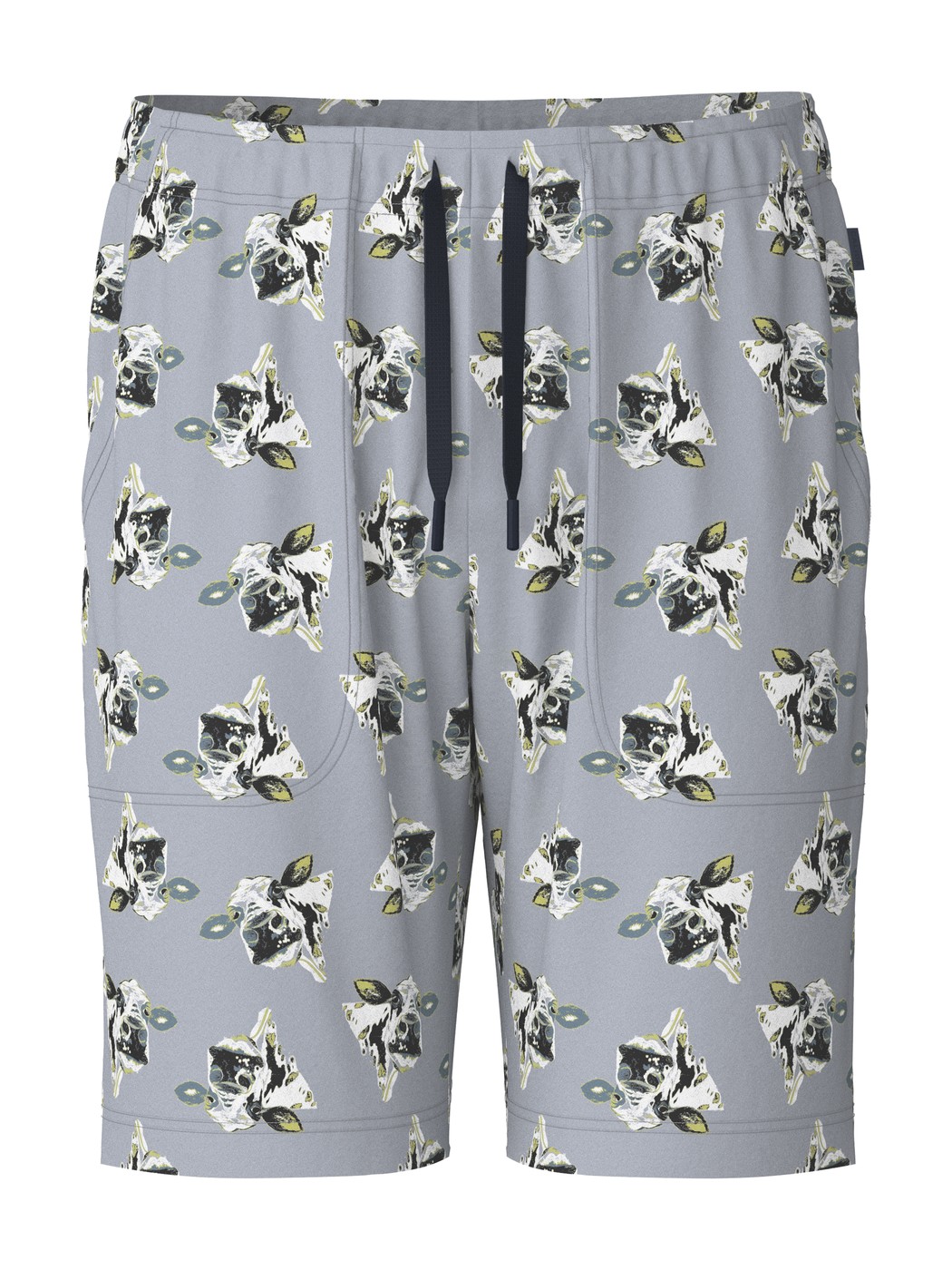 In the REMIX SLEEP LEISURE series from CALIDA, a classic cut meets a humorous print: with its eye-catching all-over cow pattern on Bermuda shorts and trousers, both equipped with practical side pockets in the colour sleet grey, the Mix&Match series offers a traditional eye-catcher. The range is complemented by a plain T-shirt and a long-sleeved shirt in anthracite, which create the perfect contrast. Made from 100% cotton.