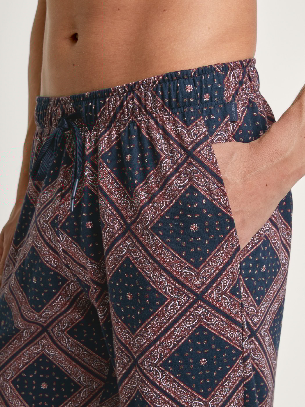 The Mix & Match range offers sophisticated style and exquisite cosiness for the reading room. It consists of a simple long-sleeved shirt, trousers with practical side pockets and an extravagant bandana print as well as cuffed trousers with a side pocket and an all-over tie print. All items are made from high-quality cotton and are perfect for a wide range of possible combinations.