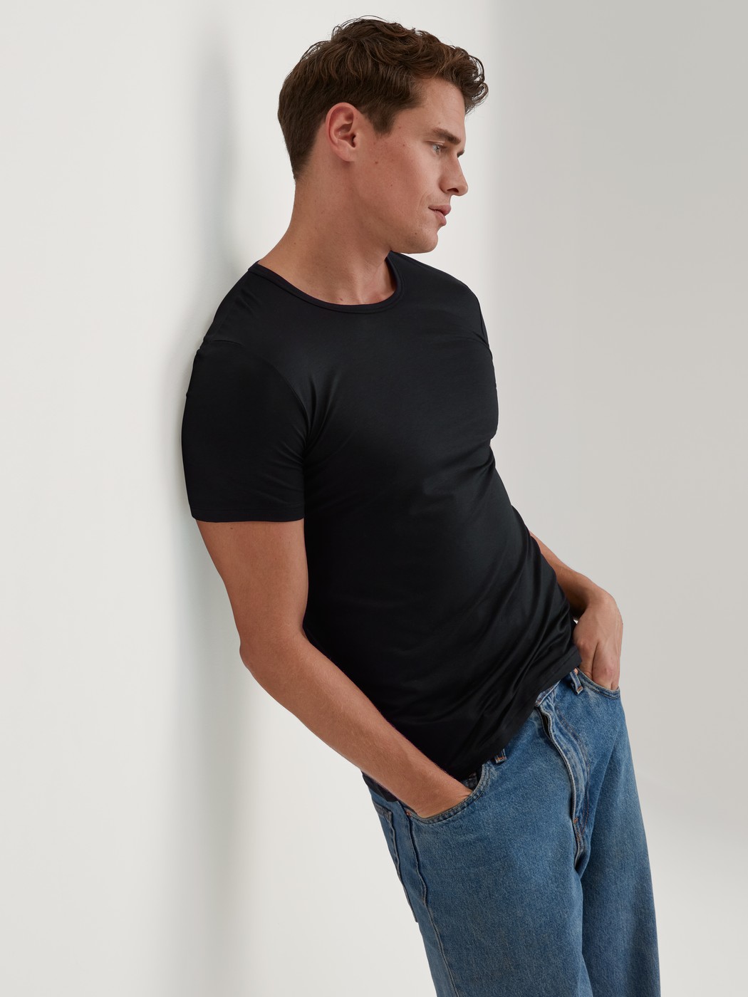 CALIDA Men’s Underwear Natural Cooling Shirt Shortsleeve | Black
