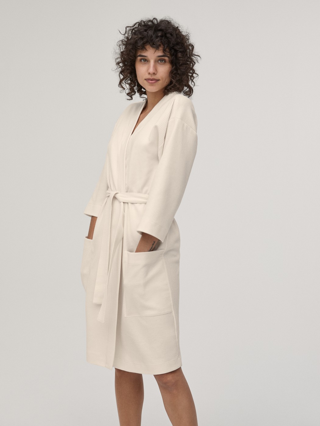 CALIDA invites you to relax with this soft piqué bath mat made of 100% cotton. The casual, Asian-inspired cut with overlapped sleeves and tie belt at waist level makes the coat something very special. The sporty waffle piqué material is light and airy on the skin.