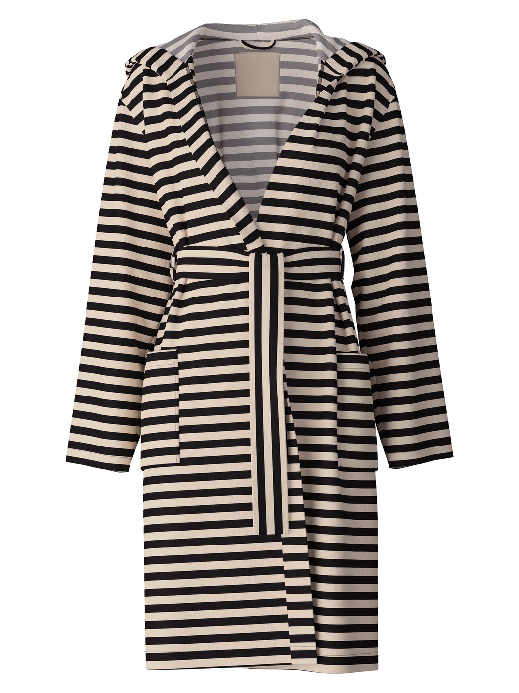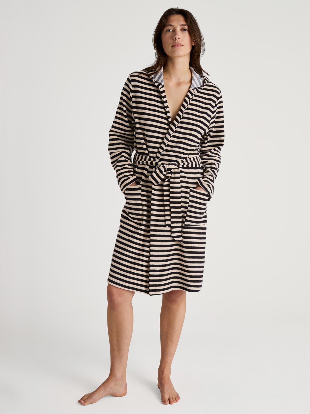 The LOUNGE STRIPES terry cloth line combines timeless comfort with all-round style. Consisting of a polo shirt, shorts and a bathrobe with a hood, the line features a black-and-white striped look that can be paired to create the perfect set for the home, the beach or casual streetwear. The cuddly terry cloth made from cotton and polyester is soft to the touch and highly absorbent – ideal for after a swim or for warm summer days. Thanks to the boxy, oversized cut, the styles can be worn by all genders and offer a relaxed fit that guarantees maximum comfort and freedom of movement.