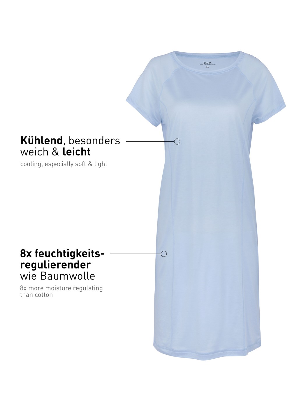 When night falls but temperatures don’t, the DEEPSLEEPWEAR COOLING nightshirt by CALIDA is the perfect choice. The cooling TENCEL™, Lyocell Micro makes the piece feel refreshingly light, while the flat seams and simple cut will put you in the mood for some relaxing dreams. Enjoy all the best bits of summer – in sustainable sleepwear that’s a smart choice indeed! Made of 100% TENCEL™ Lyocell, the fabric feels pleasantly airy, cool and dry all night long while regulating moisture 8 times more efficiently than cotton.