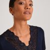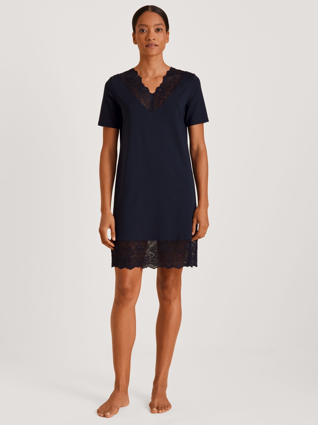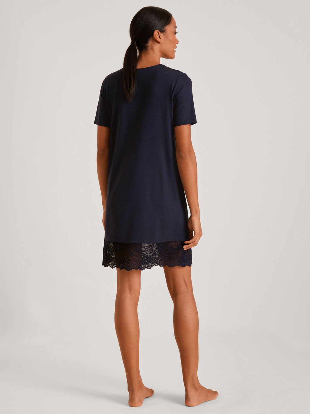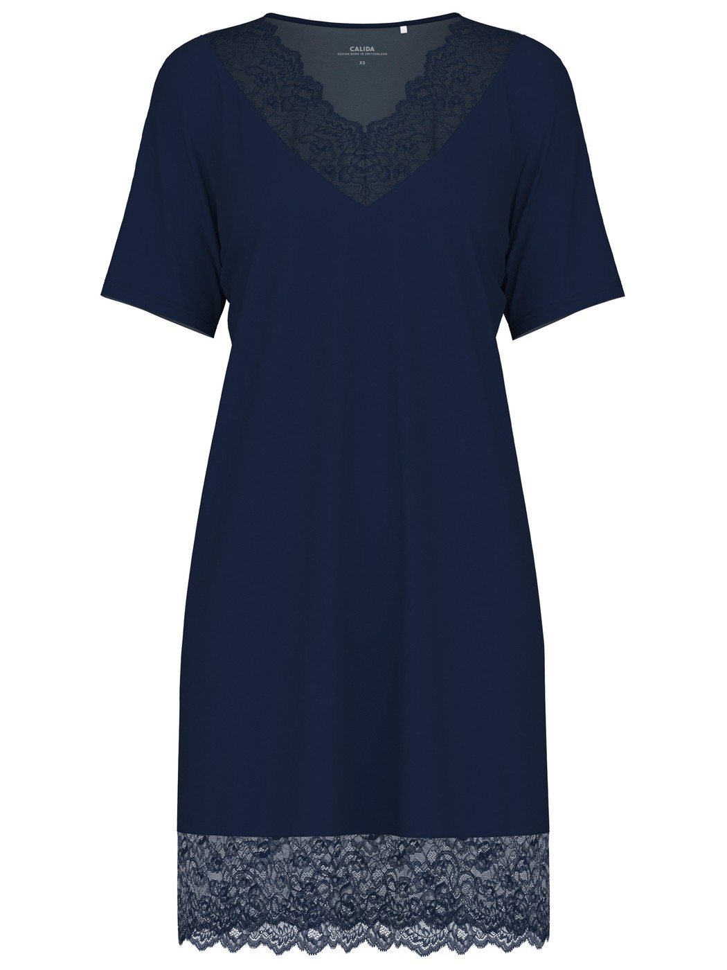 Turn bedtime into a statement of femininity with the ELEGANT DREAMS nightdress by CALIDA. This elegant Modal shirt in deep blue lets the lace do the talking – both on the hem and the V-neck. The flowing material creates a sense of lightness and envelops your body with its straight cut. This stylish piece is sure to send you straight into a restful sleep.