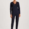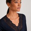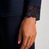 Some designs need no explanation. The ELEGANT DREAMS long-sleeve pyjama by CALIDA is one such case. This elegant sleepwear set, consisting of a lace-trimmed V-neck top and comfortable slip-on pants, boasts a simple charm. Thanks to the light, flowing Modal fabric, you’ll sleep comfortably at any temperature in this tribute to feminine beauty. Discover why the ELEGANT DREAMS collection has become a real customer favourite just like that.