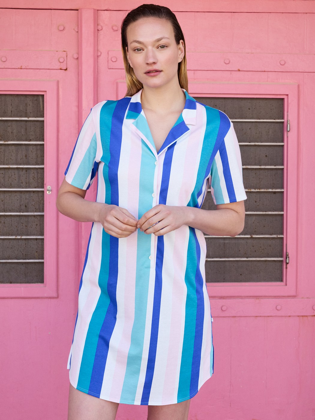 CALIDA Women’s Nightwear Favourites Coast Short-sleeved Nightdress, Length 95 Cm | Ice Green