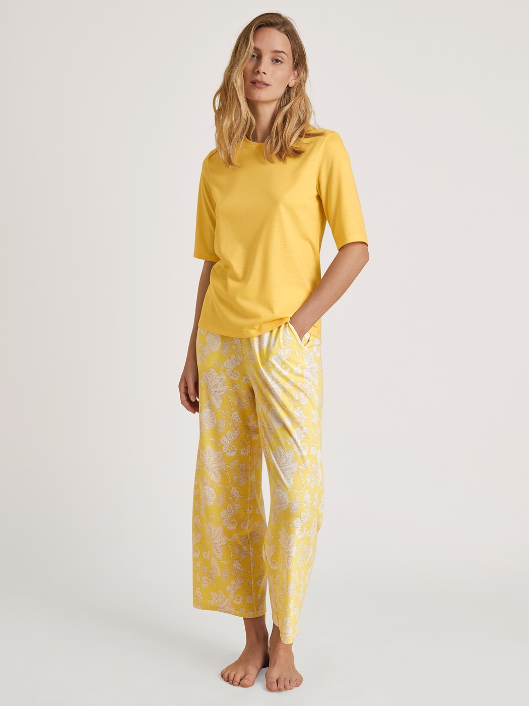If you want your sleepwear to promote physical recovery overnight, it needs to be made of a breathable blend of materials that regulates body temperature. This is certainly true of the 7/8-length pants from the FAVOURITES LIGHT line by CALIDA. These casual pants with a wide, fabric-covered elastic waistband are wonderfully refined and super-comfy thanks to their high-quality material, made of 50% cotton and 50% TENCEL™ Modal. The fashionable design offers the ultimate in comfort, while the zingy pattern is perfect for mixing and matching.