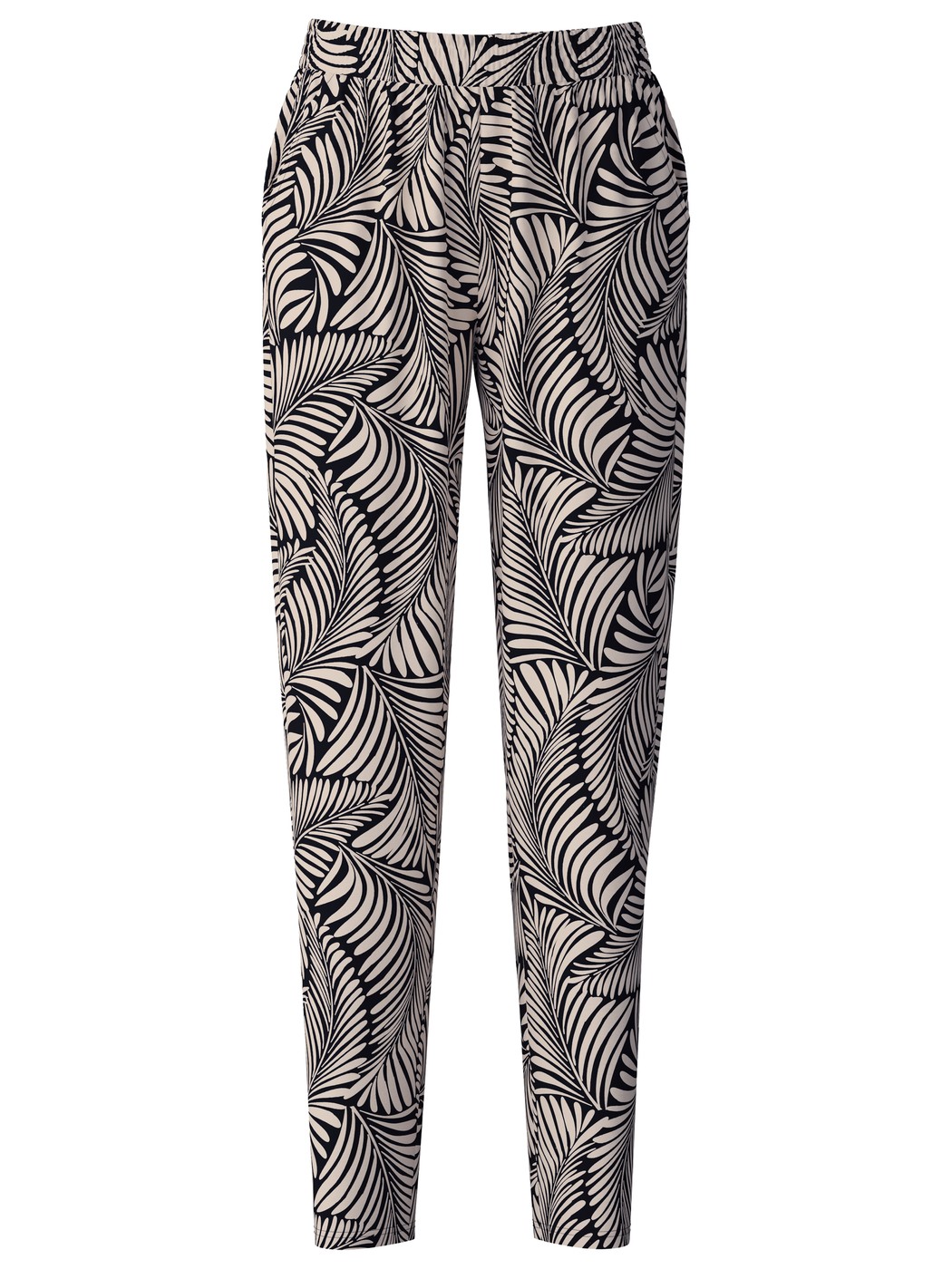 The FAVOURITES SUN mix & match range brings joie de vivre and feel-good moments. Stylish palm tree and sun elements in shades of yellow, beige and black create a warm look. Highlights include a boxy-cut short-sleeved shirt and shorts in dune beige muslin, which can be worn as a set or combined in a variety of ways. The collection is complemented by a sunshine yellow T-shirt, shorts and capri trousers with a Greek boho-chic palm print, as well as V-neck shirts and trousers with a two-colour palm leaf print. Perfect for creative looks – within the range and beyond.