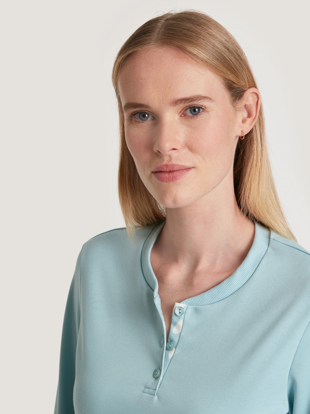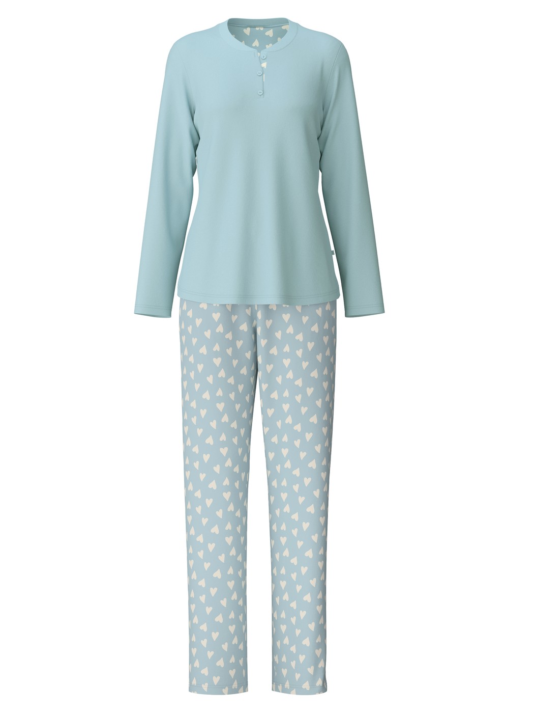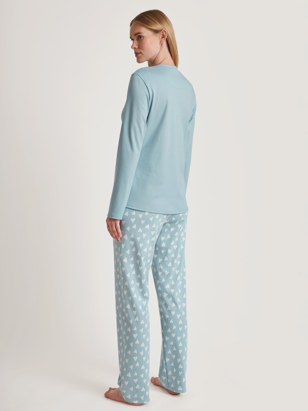 The playful vintage heart print on sterling blue gives the MIDNIGHT LOVE range a modern touch. Made from heavyweight cotton interlock, the sleepwear is breathable against the skin and will accompany you through a restful night.