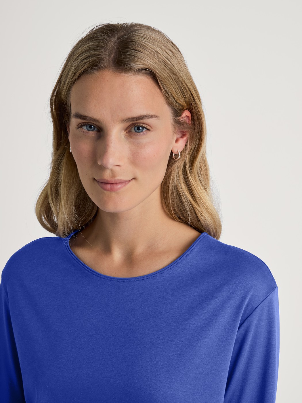 It’s almost a shame to only wear it in bed! Our ORIENT DREAMS sleepwear line in bright Dazzling Blue brings the charm of Greek art to the bedroom with its ornamental print. Made from high-quality SUPIMA® cotton, the pieces offer luxurious softness, high durability and brilliant colours. The modern cuts – like the buttoned pyjamas with palazzo pants, the airy nightshirt and the 7/8 pyjamas – are ideal for a relaxed night’s sleep and can be effortlessly integrated into your day-to-day. Classic pyjamas and cuffed pyjamas complete the collection.