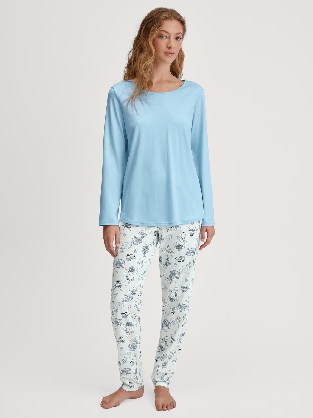 CALIDA Women’s Nightwear Swiss Resort Pyjamas, Long | Cascade Blue