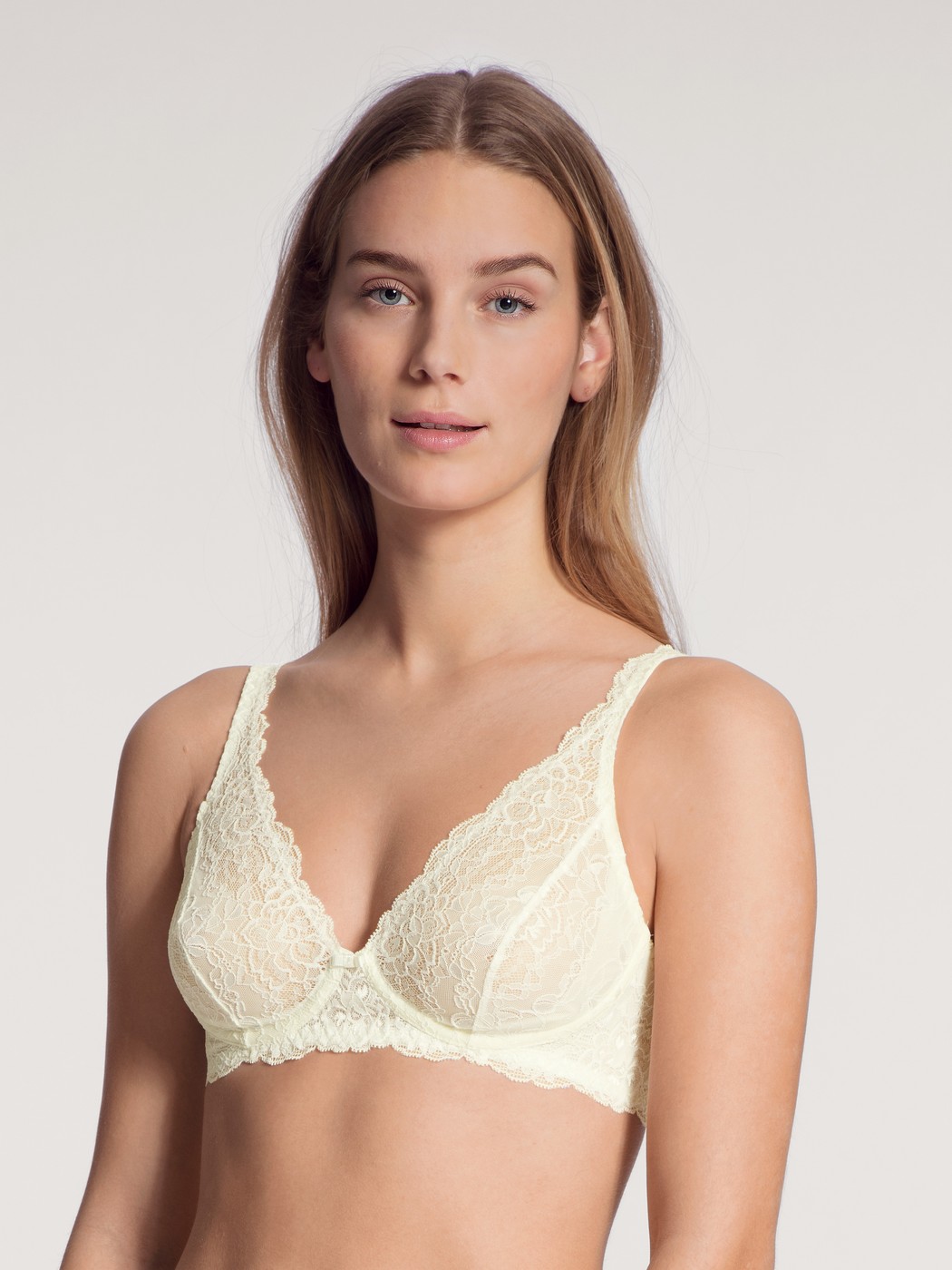 The CALIDA bra without underwire of the SENSUAL SECRETS series is completely made of delicate lace and radiates romantic sensuality. The wide underbust band and the excellent workmanship ensure a perfect fit and wearing comfort throughout the day. A special power mesh material provides maximum support even without a hanger.