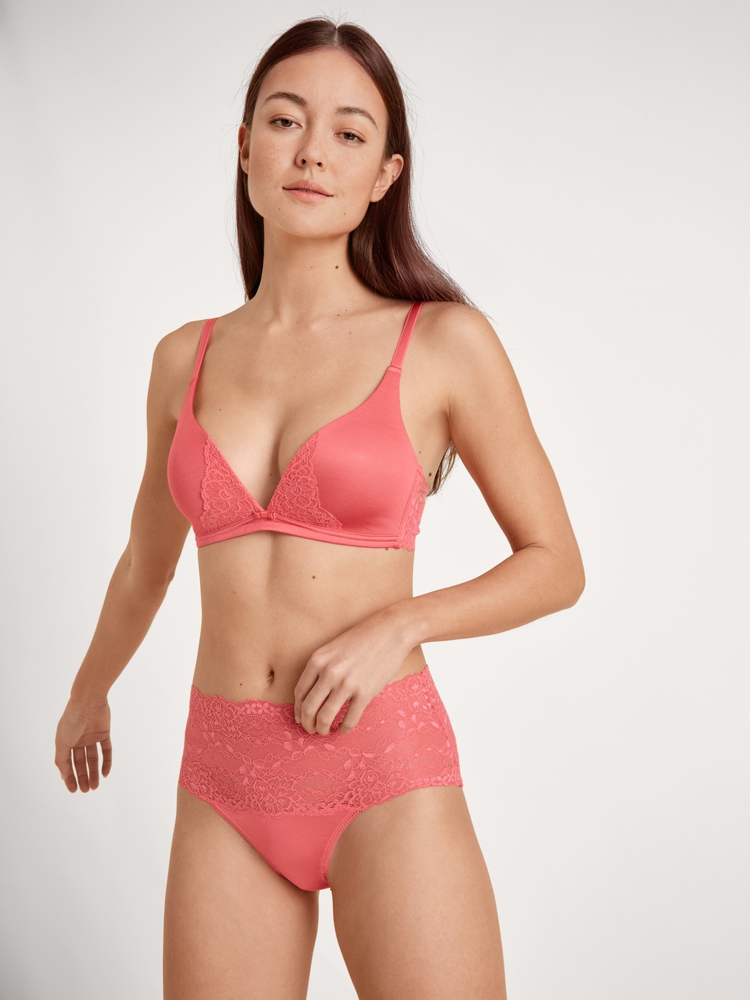 New fit from the popular SENSUAL SECRETS series by CALIDA. A comfy non-wired design is the new addition to this bra series. The shimmering viscose on the outside is skilfully adorned with seductive lace.