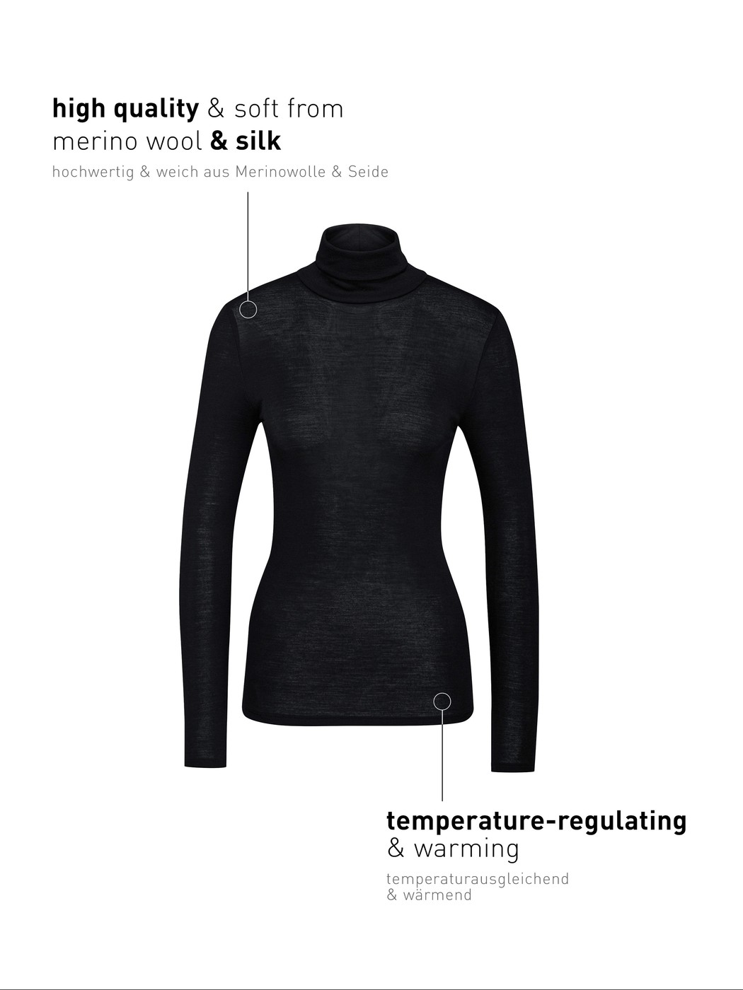 CALIDA Women’s Underwear True Confidence Long-sleeve Turtleneck Shirt In Wool-silk | Ws Schwarz